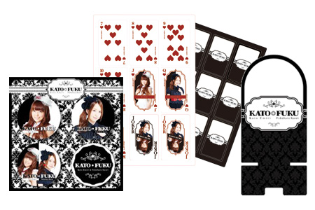 かと*ふくをイメージしてデザインされた、「缶バッジセット(全4種)」「アクリルスマートフォンスタンド」「トランプ」の計3アイテムのセットです。黒白のシンプルデザインがクールでかわいい仕上がり♪